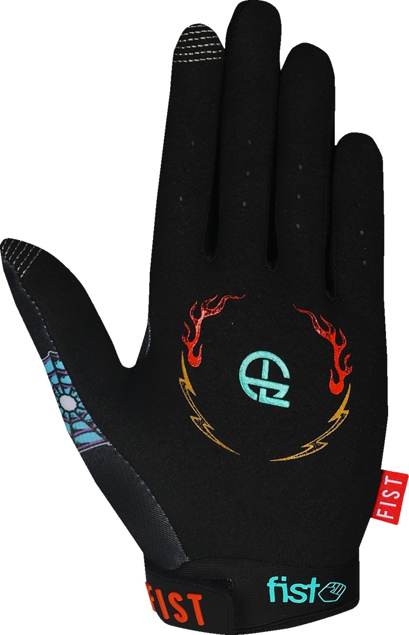Ride with style and control in the FIST Handwear Strapped Red Label Panther Gloves, a Greg Lutzka collab graphic built for BMX, MTB, and MX. A pre-curved Clarino® palm delivers durable feel without bunching, while the breathable twill spandex upper keeps hands cool. Tacky silicone printing on the palm and fingers boosts grip in dry or wet conditions, and the secure hook-and-loop wrist closure finishes the short-cuff design.