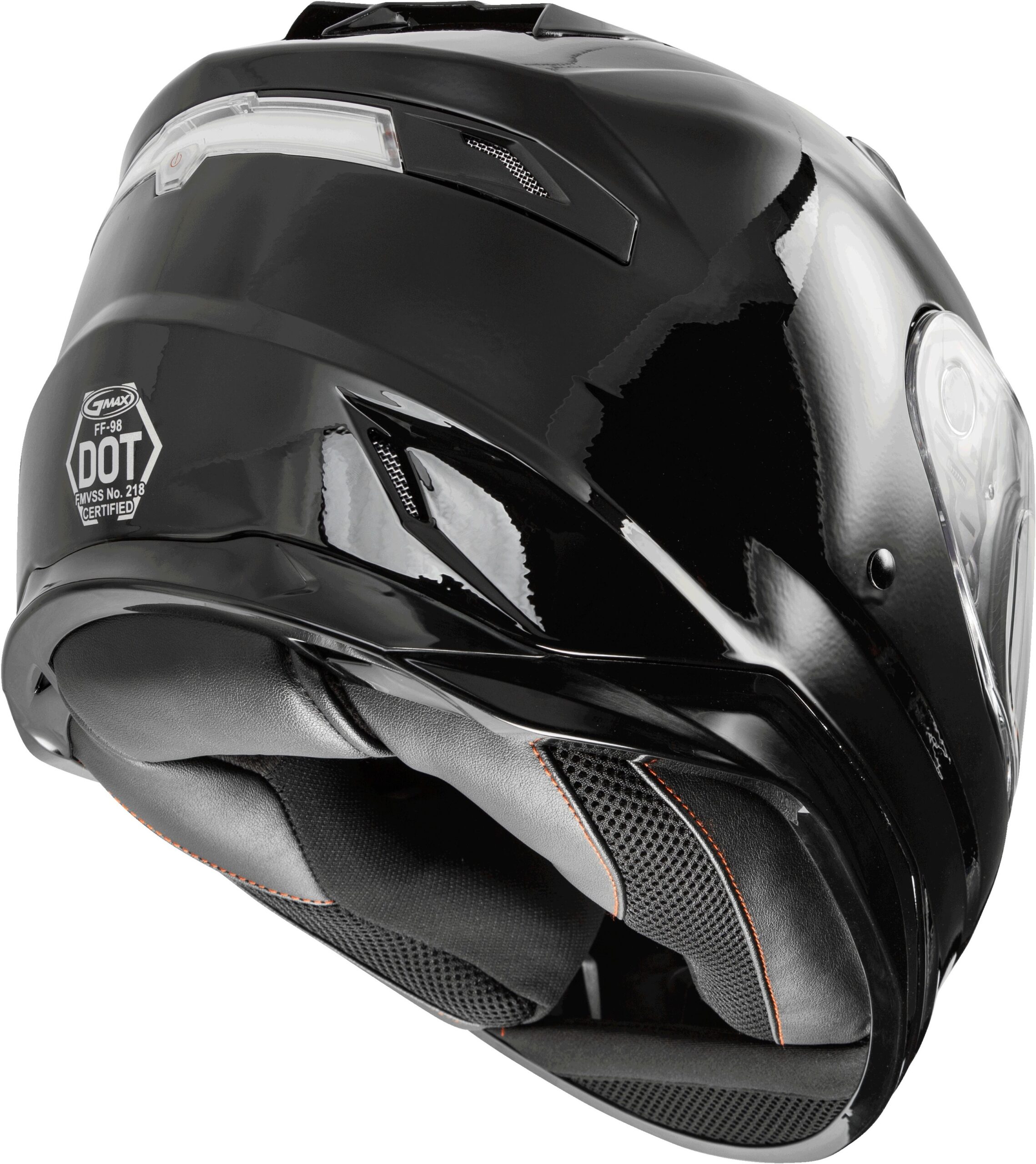 The GMAX FF-98 Full Face Helmet in Black (2X-Large) combines advanced safety and comfort features for a premium riding experience. This helmet is DOT approved and includes a lightweight Poly Alloy shell with a tool-less, quick-release face shield mechanism and a shield lock. It features an integrated red LED rear light with the option to upgrade to a wireless brake light kit (P/N 72-3781).