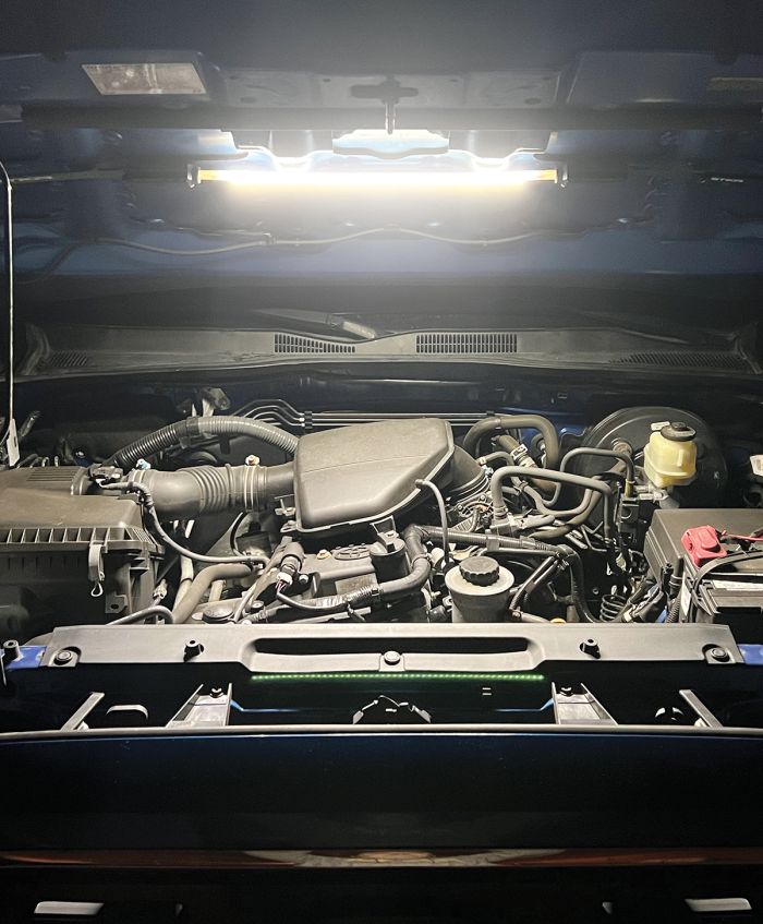 The Risk Racing FLEXIT Underhood Mechanics Light transforms your workspace with a versatile, flexible lighting solution. Folding down to just 5" x 5" x 1.5", this compact LED light delivers up to 1,000 lumens for full engine bay illumination. Its 160° rotatable LED membrane, dual adjustable straps, and powerful neodymium magnets provide secure, hands-free mounting. Four power modes (including a flashing red hazard) and a fast-charging USB-C rechargeable 4400mAh battery ensure you have reliable light for any task. Durable and weatherproof, this light is ideal for mechanics, off-roaders, or anyone needing bright, portable illumination.