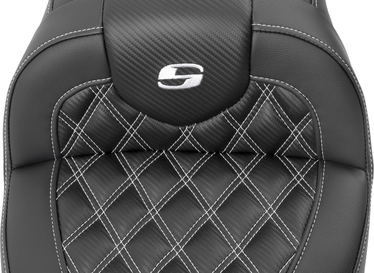 Experience superior comfort on long rides with the Saddlemen RoadSofa™ Seat featuring a backrest, carbon fiber-style lattice stitch, and white stitching. Designed specifically for 2023-2024 Harley-Davidson FLHX Street Glide, FLTRX Road Glide, and select CVO models, this seat utilizes SaddleGel™ in both the front and rear to reduce tailbone pressure and improve circulation for both rider and passenger. The tall 5-1/2" lumbar support and wide driver saddle offer outstanding back and leg support, while the refined split-cushion layout minimizes back pressure. Crafted with ventilated, soft perforated leather and weatherproof SaddleHyde™ material for a luxurious, no-maintenance finish. Includes a fitted rain cover for protection against the elements. Made in the USA.