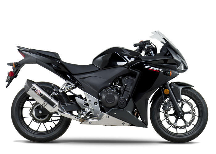 The R-77 features a straight baffle with removable low volume insert. The muffler’s front-cap is MIG-welded while the end-cap is riveted using high-end 304-L polished stainless steel rivets and bands. It was a perfect choice for Honda’s new 500cc line-up!