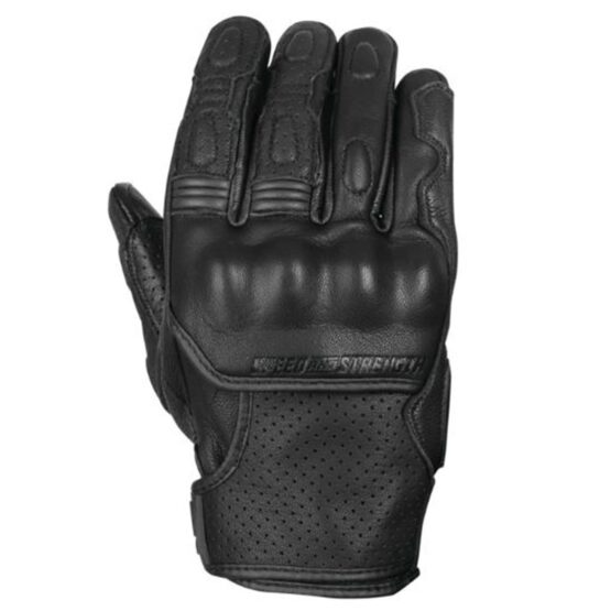 The Twist of Fate Leather Gloves in Black, Size Small, by Speed and Strength, are designed for optimal protection and comfort during rides. Constructed from full-grain cowhide leather, these gloves provide durability and a premium feel. They feature thermoplastic knuckle protectors with a leather cover for enhanced safety. The gloves have a short cuff design, offering excellent protection while maintaining dexterity and control. For improved airflow, they incorporate perforated panels, and the reinforced leather palms ensure a secure grip. Additional features include padded finger protectors, a pre-curved race cut fit for a natural hand position, a hook-and-loop wrist closure for a secure fit, and touchscreen-compatible fingertips for convenience. Ideal for motorcyclists seeking both style and functionality.