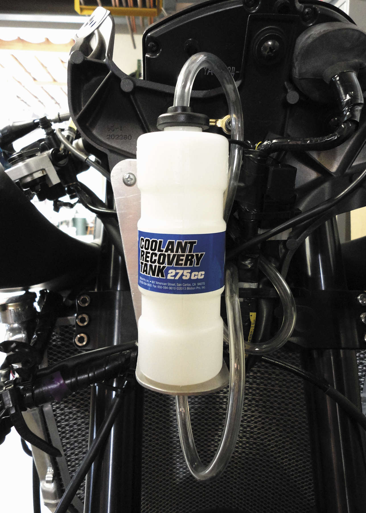- Includes 275cc bottle, hose, clamps, mounting ties and instructions