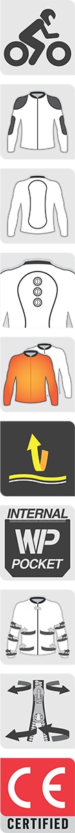 - Multiple snap-button system to integrate Level 2 CE-certified Alpinestars Nucleon back protection