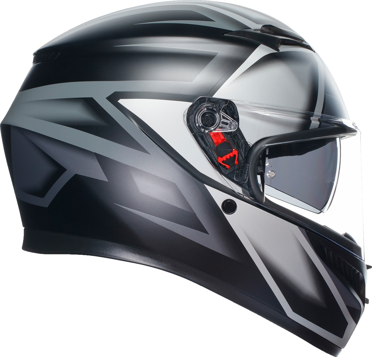 The AGV K3 Compound Full Face Helmet delivers premium protection and comfort for motorcycle riders. Constructed from high-resistance thermoplastic resin, it features a collarbone-safe profile, optimized aerodynamics, and a shell shape designed for stability at high speeds. Four front vents and a rear extractor ensure efficient airflow, while the 2Dry liner quickly absorbs sweat and provides a snug, glasses-friendly fit. Removable and washable interiors enhance hygiene. The helmet comes with a 100% Max Vision Pinlock® lens and wind protector, an integrated anti-scratch sun visor (removable without tools), and a micro-opening multistep visor mechanism. Certified to DOT and ECE 22.06 standards. Other features include a steel micrometric retention system, extra quick release visor system (XQRS), and compatibility with generic communication systems. Matte gray/black Compound graphic, size 2XL.
