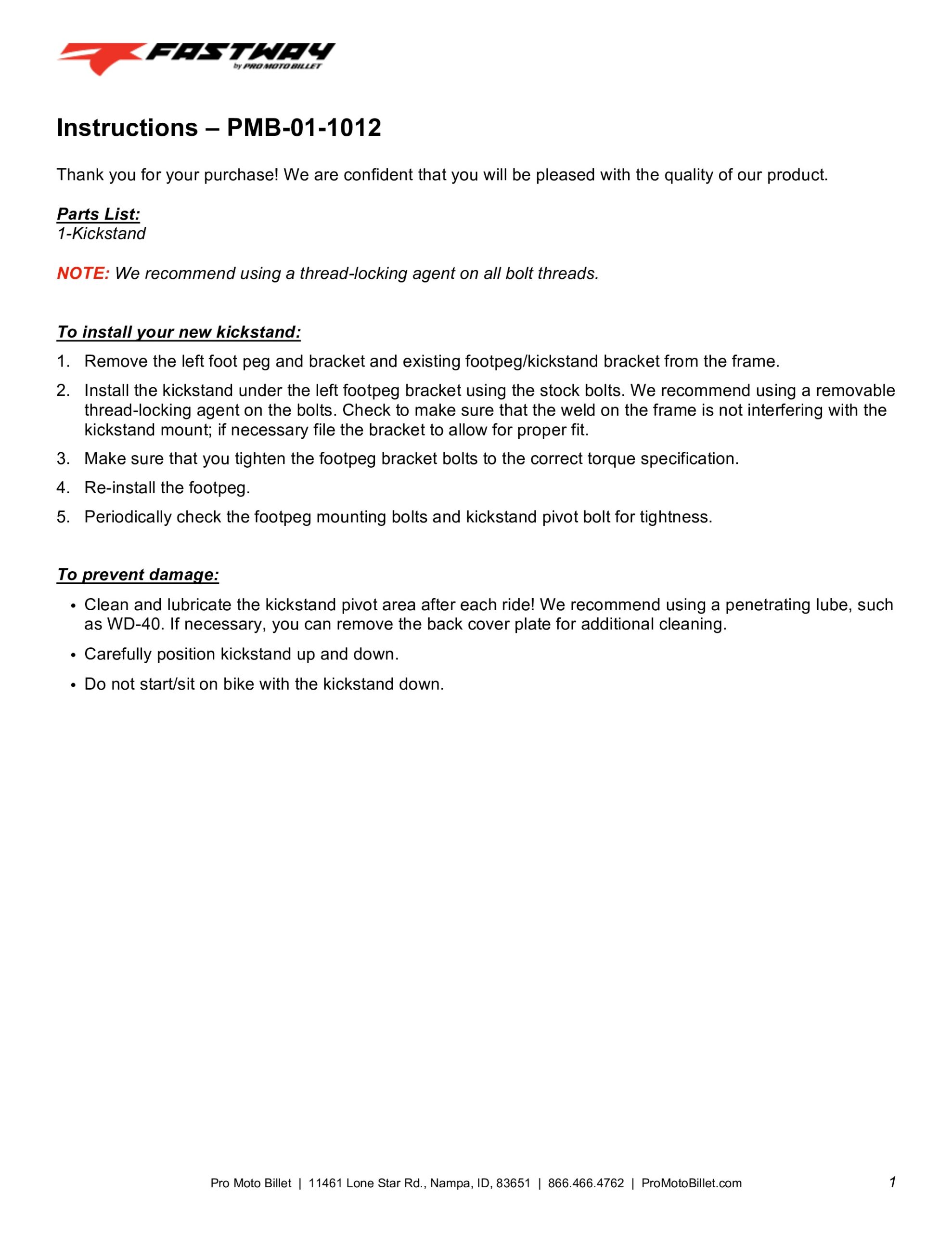 Fastway Kickstands are easy to install, provide superior strength, and offer a lightweight design. Kickstands bolt on using existing mounting locations and feature 6061 billet aluminum construction for durability and ease of maintenance. When on the trail the stand folds under the side panel. You won’t even know it’s there!