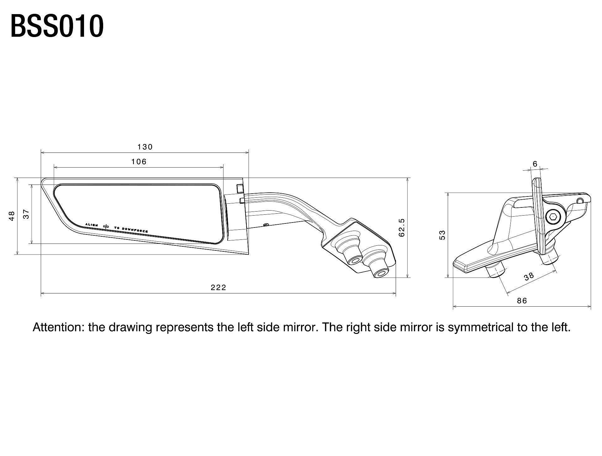 - Thanks to a rotating system, by a simple movement, the two parts are aligned in a closed position and the mirror becomes an aerodynamic foil