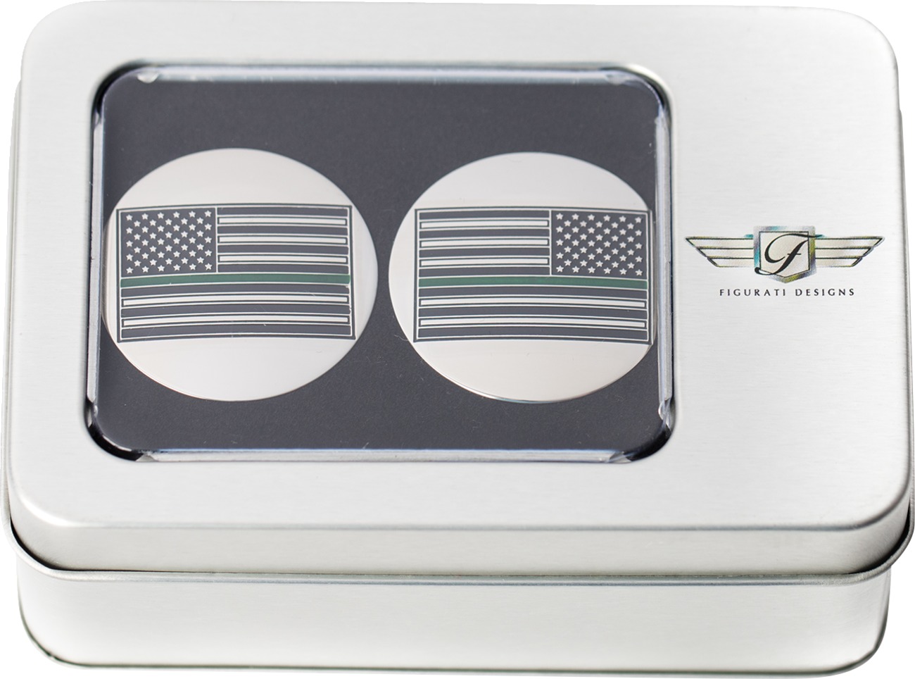 Upgrade your Harley-Davidson Touring model with these custom Swing Arm Covers from Figurati Designs, featuring a Green Line American Flag in a reversed style. Crafted from durable 316L stainless steel, these covers keep contaminants out and are secured with four spring-loaded ball bearings and an O-ring seal for easy installation and a secure fit. Designed to fit all Harley-Davidson Touring models, including Trikes.