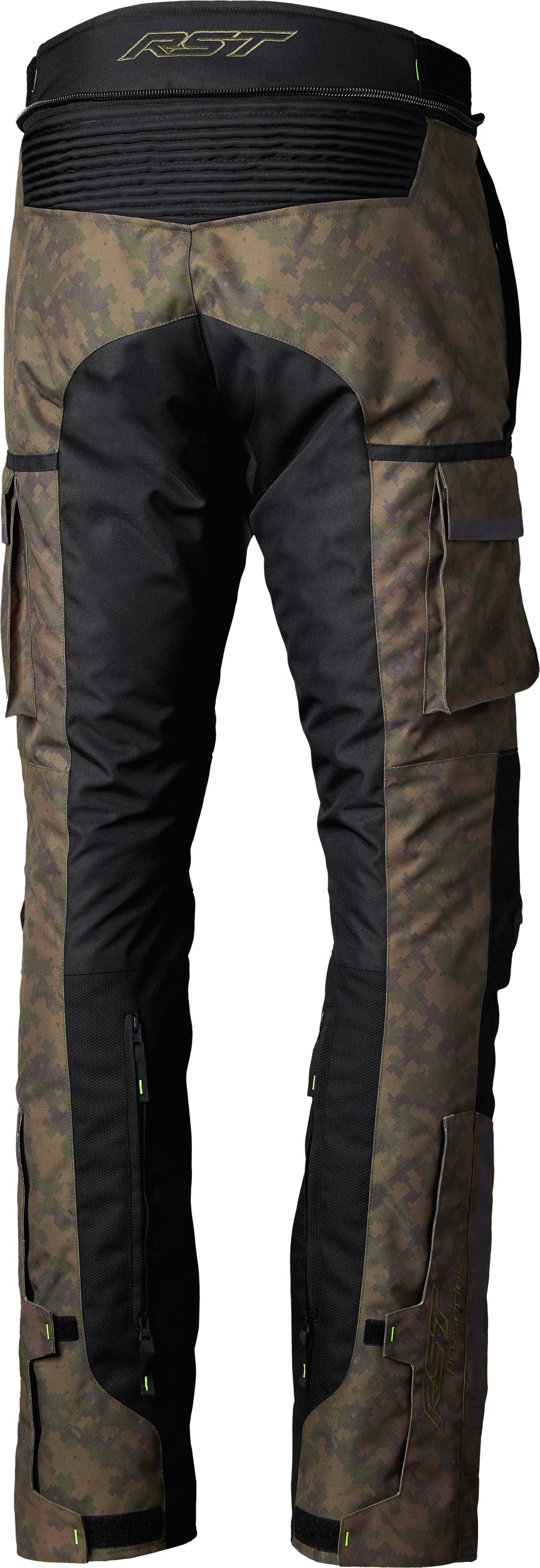 The RST Pro Series Ranger CE Pants are engineered for adventure and touring riders seeking the highest level of protection and versatility. Constructed with MaxTex and Ballistic outers and a fixed quick dry mesh lining, these pants are equipped for any journey. CE certified to AA rating with Level 2 hip and knee armor, they feature a removable SinAqua Pro waterproof over-trouser and a removable midweight thermal lining for adaptable weather protection. Designed for comfort even over MX boots, they offer waist and double leg adjusters, motion panels, seat grippers, reflective details, waterproof zipped pockets, knee cups, carabiner, large bellow pockets, front vents, and a 360° connection zip. Adventure Touring fit profile.